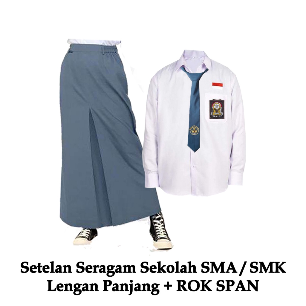 Terbaru Setelan Rok Span Paket Lengkap Seragam Sekolah SMA / SMK Putih - Abu Perempuan Lengan Panjang