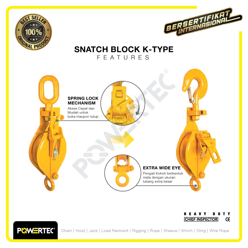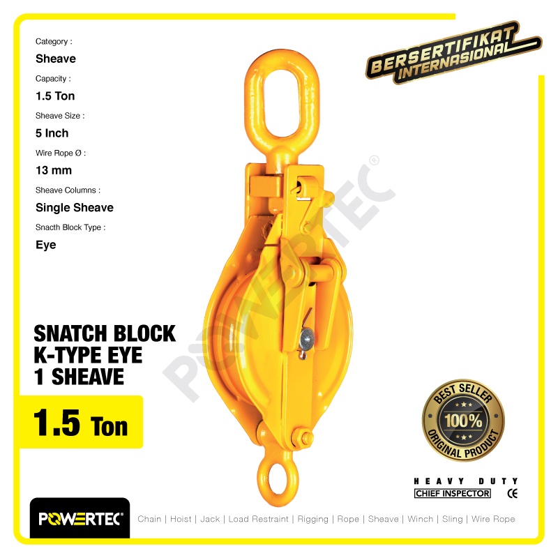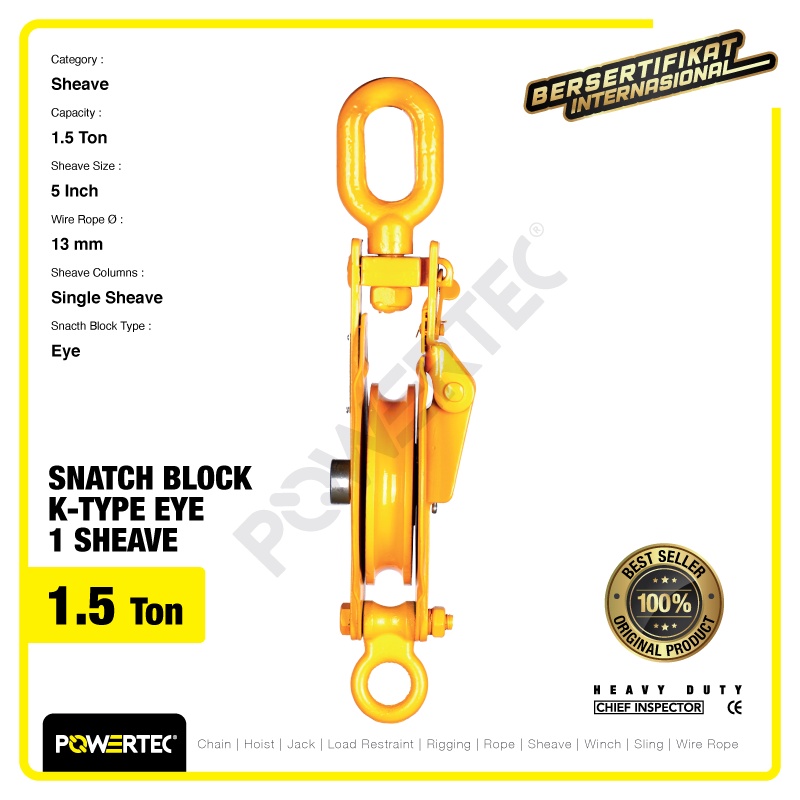 POWERTEC SNATCH BLOCK / PULLEY BLOCK EYE 1.5 TON - 5" K-TYPE 1 SHEAVE