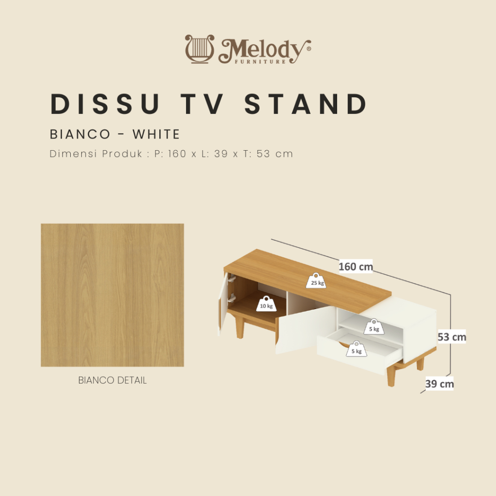 Melody Furniture - Lemari Buffet Rak Dissu TV Stand 160 cm - BIANCO - WHITE