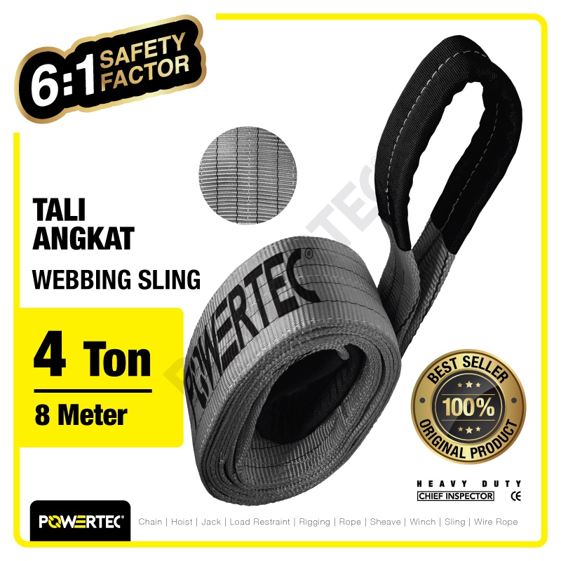 POWERTEC WEBBING SLING BELT / TALI ANGKAT 4 TON X 8 METER DOUBLE PLY