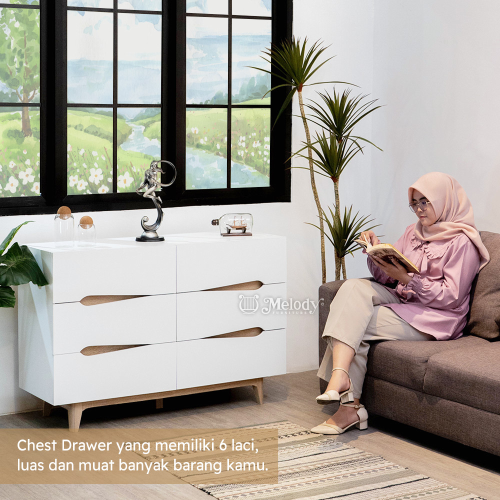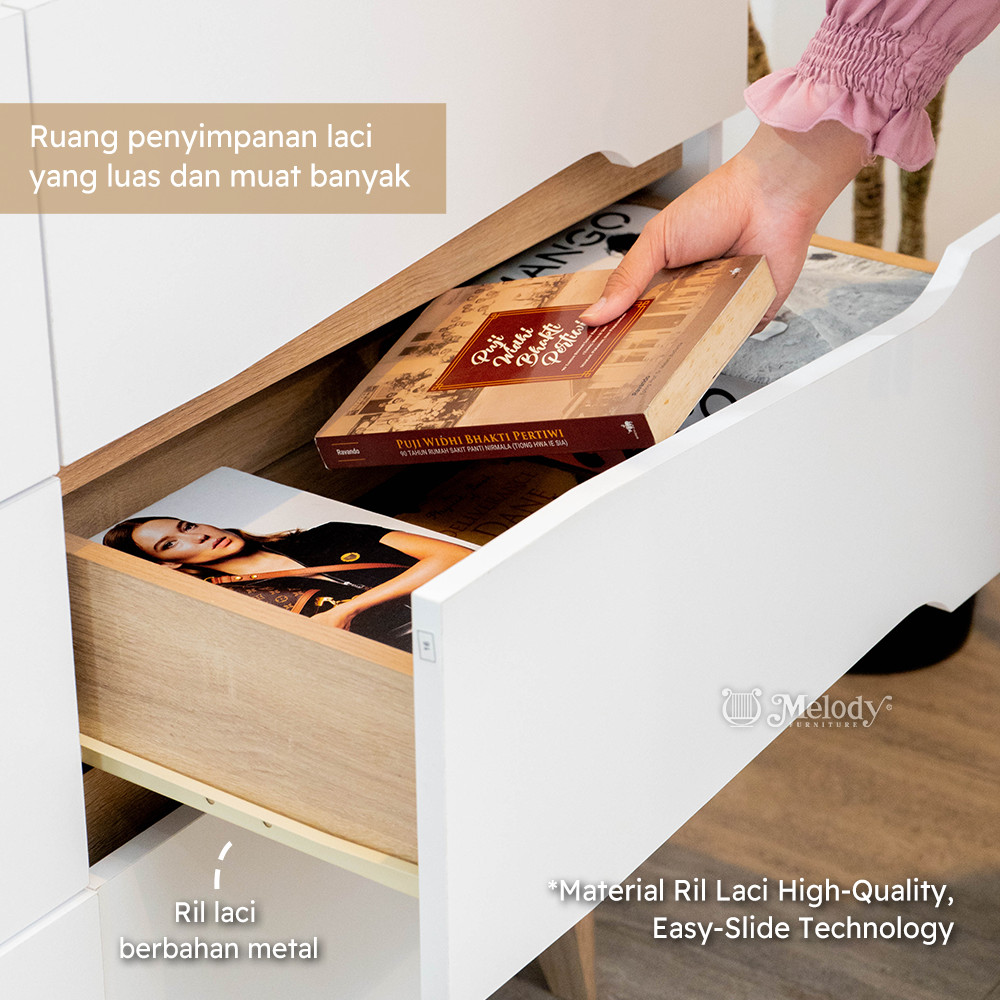 Melody Furniture - Sideboard Credenza Minimalis Laci Buffet R Tamu - Leaf Chest Drawer 120 cm