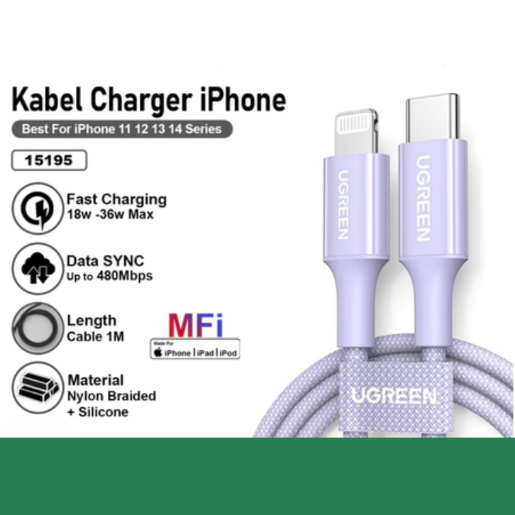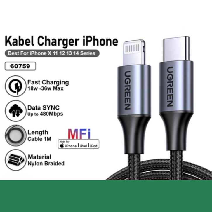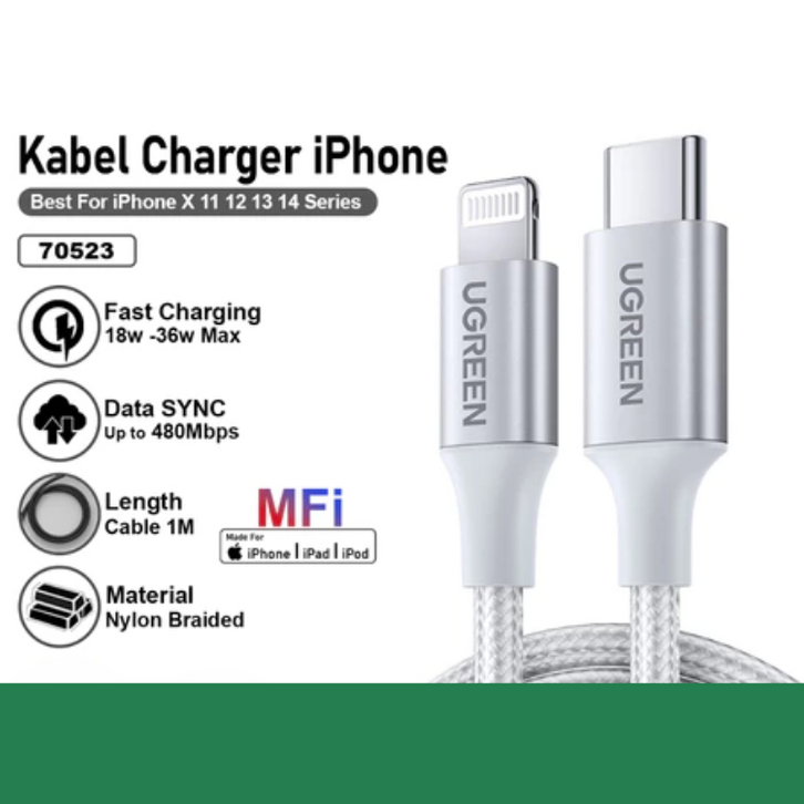 KABEL DATA IPHONE UGREEN FAST CHARGING ORIGINAL KABEL USB MURAH