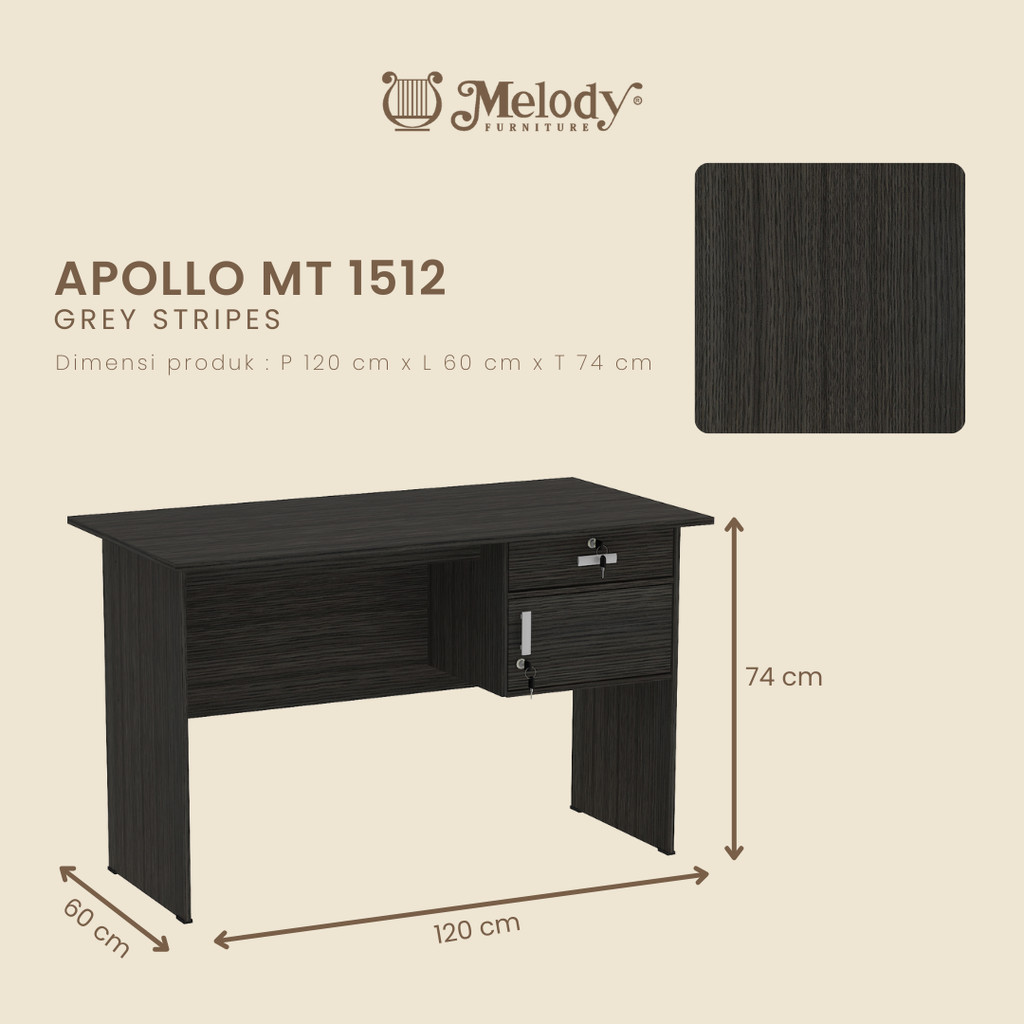 Melody Furniture - Meja Kerja Kantor Belajar dengan Laci Kunci Apollo MT 120 cm - GREY STRIPE