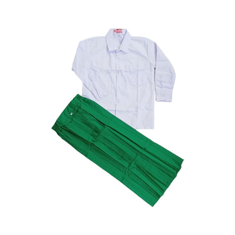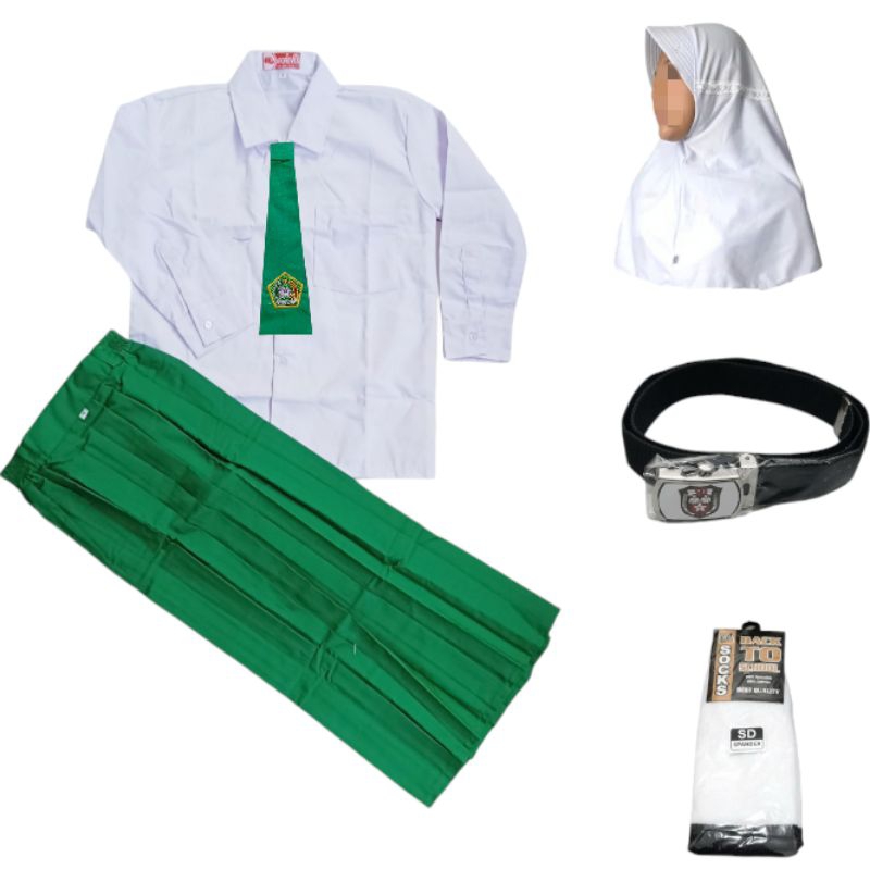 Setelan Seragam Sekolah MI Perempuan Hijau Putih Lengan Panjang Rok Panjang Super Komplit Kelas 1-6