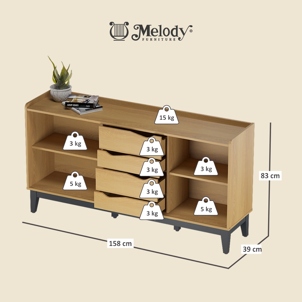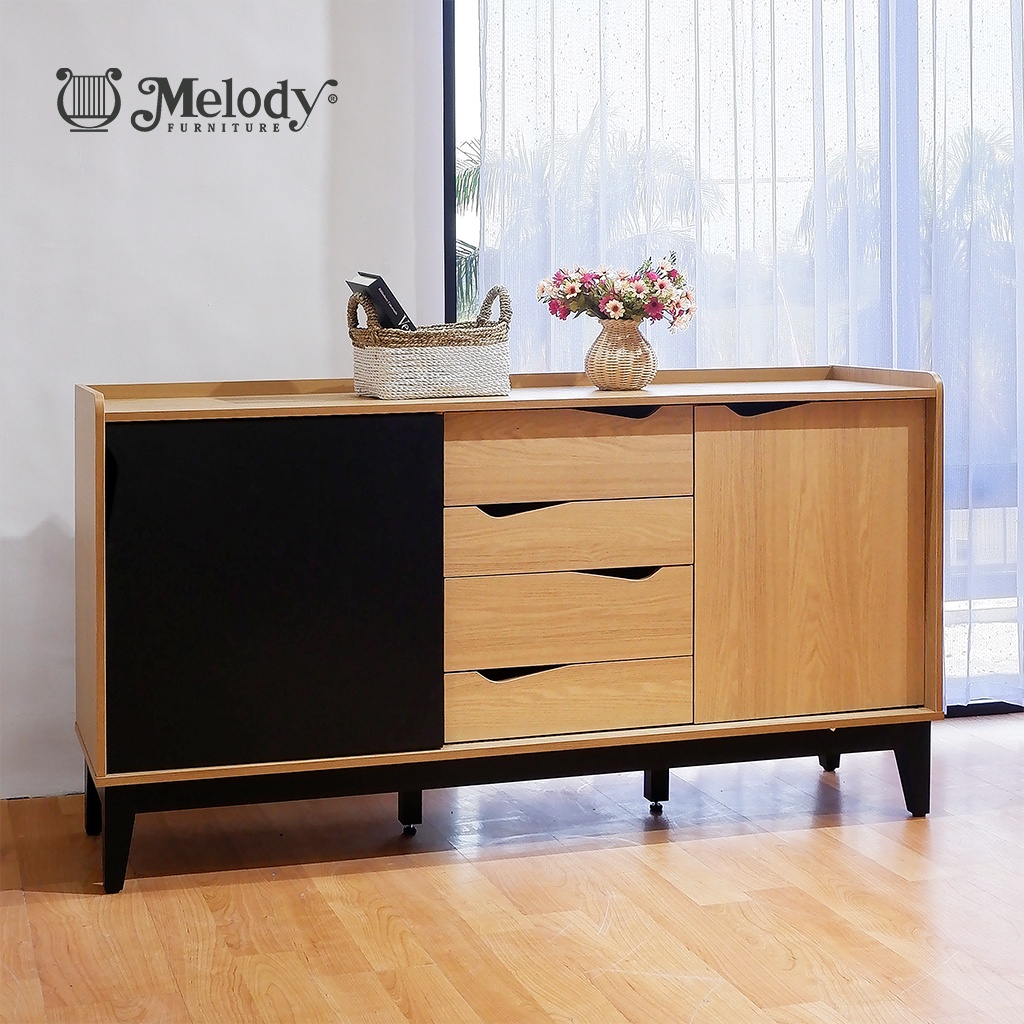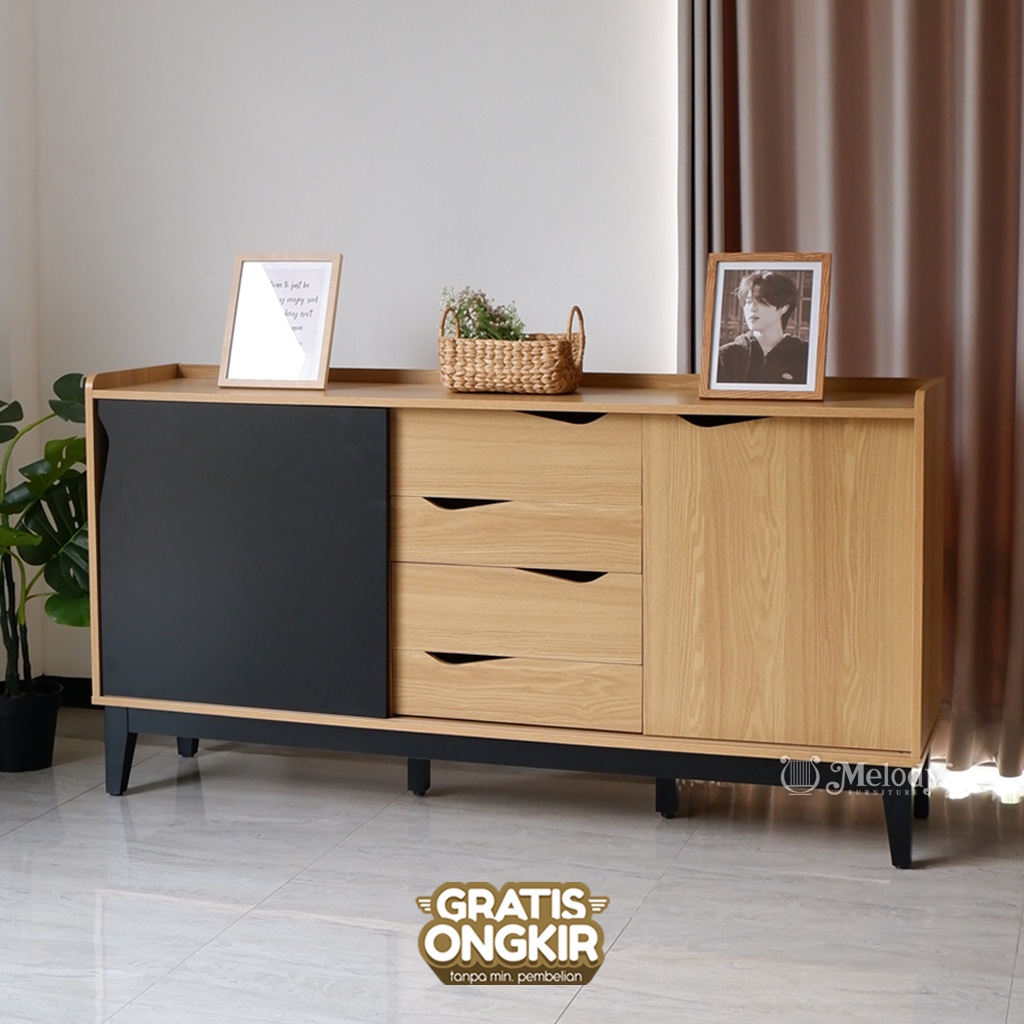 Melody Furniture - Laci Buffet Lemari Serbaguna Credenza Yvaine Sideboard 160 cm Bianco - Black