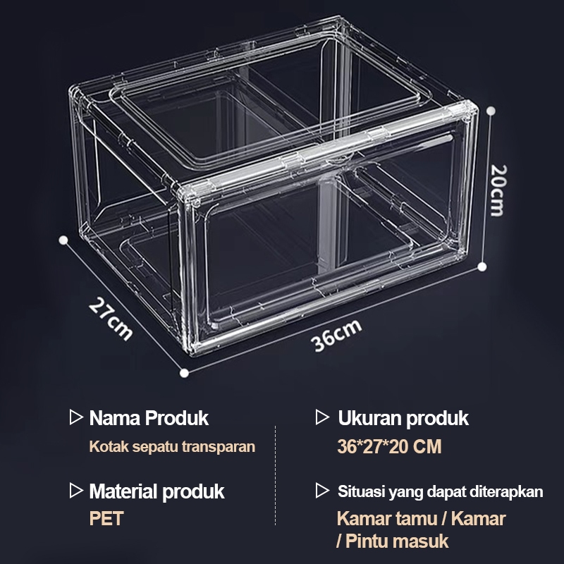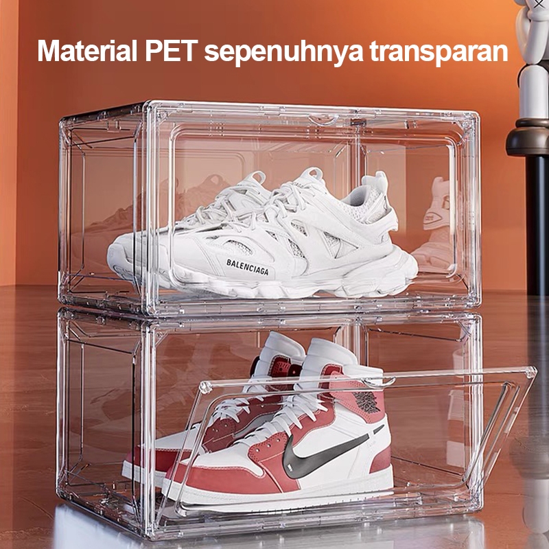 Paket 5/10 Kotak Sepatu Akrilik Ukuran Besar Rak Sepatu Magnetik Yang Dapat Ditumpuk Organizer Penyimpanan Transparan