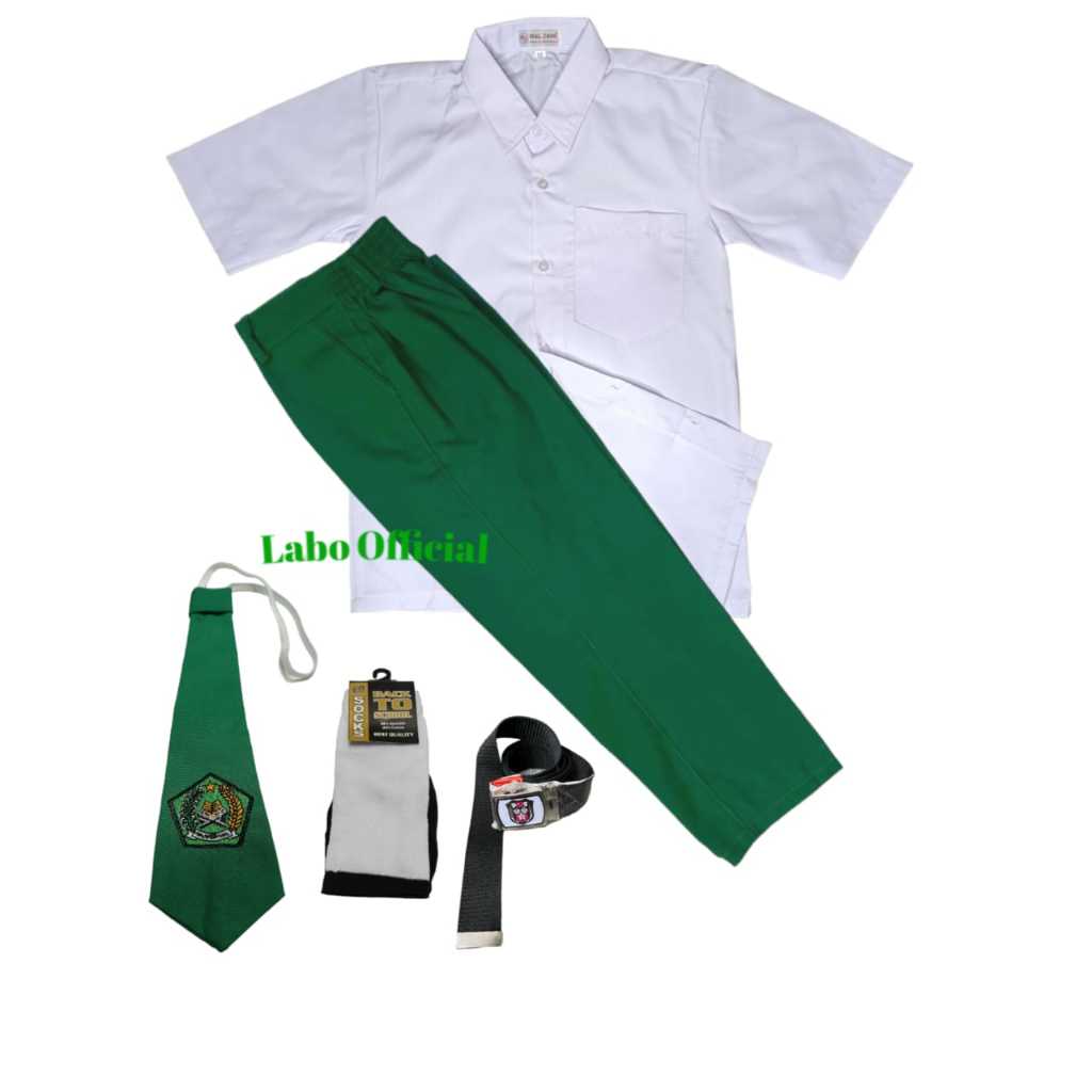 Setelan Seragam Sekolah Madrasah Idtidaiyah/MI Putih Hijau Lengan Pendek Celana Panjang