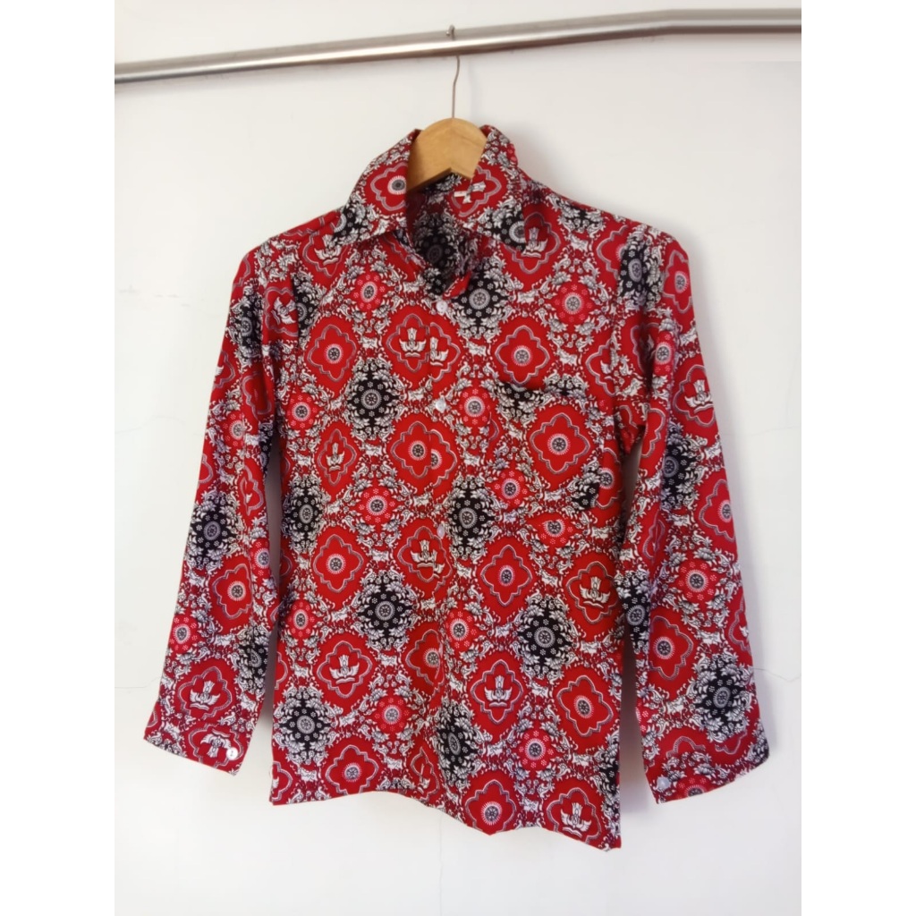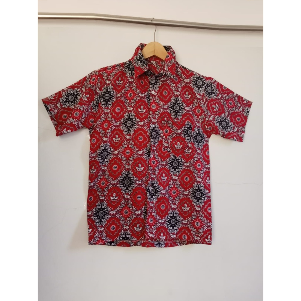 Baju Batik SD Lengan Panjang dan Pendek Merah Nasional