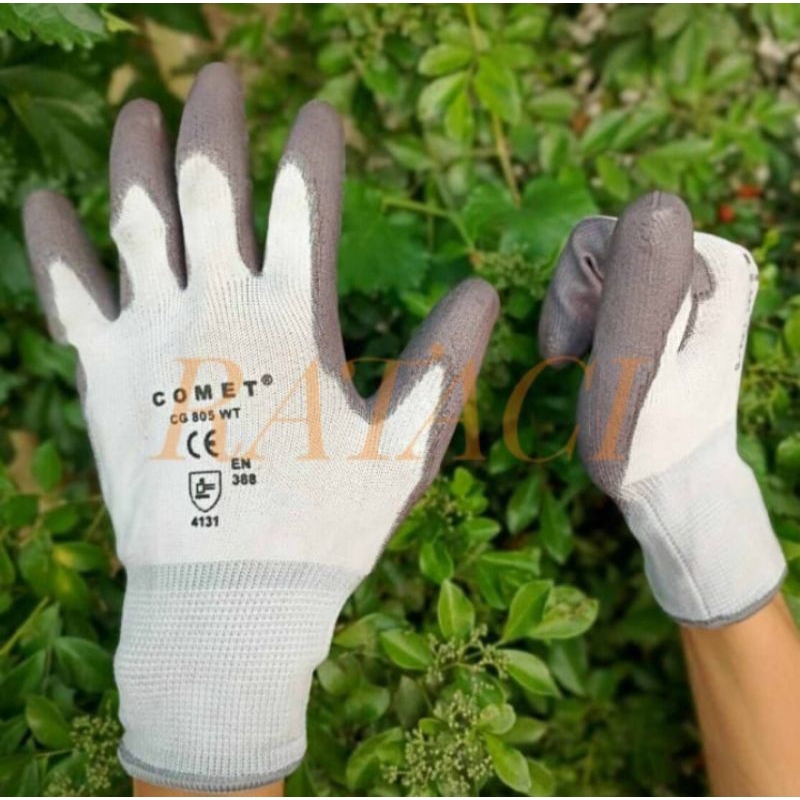 1lusin/12pasang sarung tangan safety comet abu kain nylon lapis karet palm fit anti slip mekanik sepeda motor industri p
