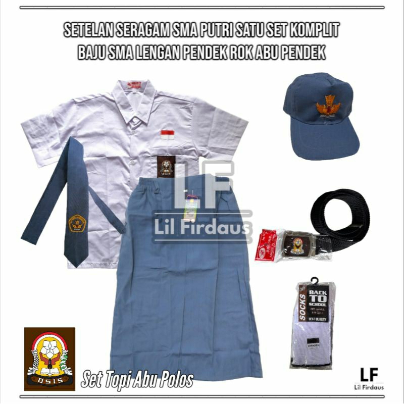 Setelan SMA Perempuan Baju SMA Lengan Pendek Rok Abu Pendek