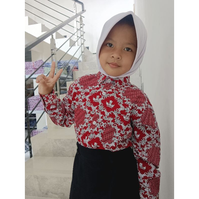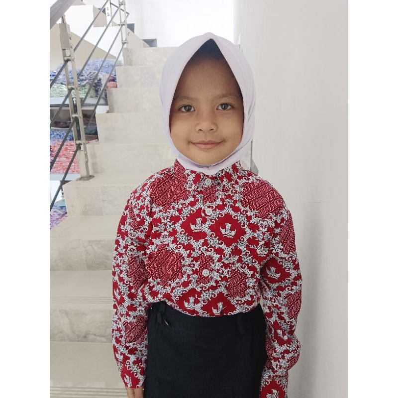 Batik SD Nasional Merah Motif Lereng Lengan Panjang dan pendek ready stock