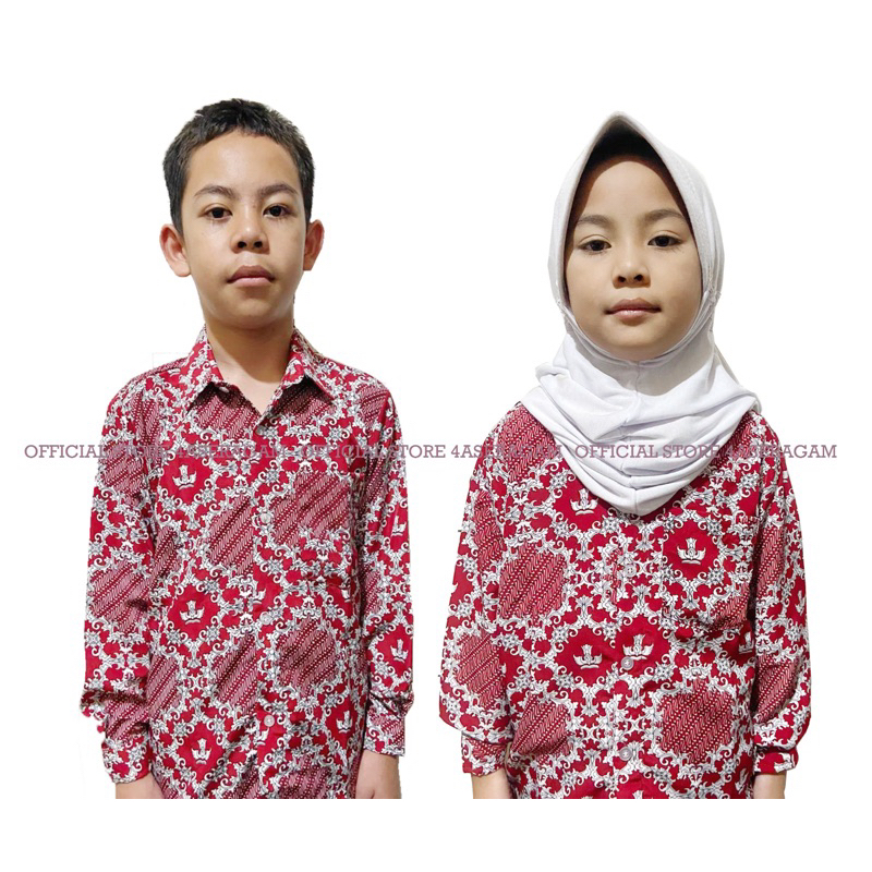 Batik SD Nasional Motif Lereng Merah Lengan Panjang