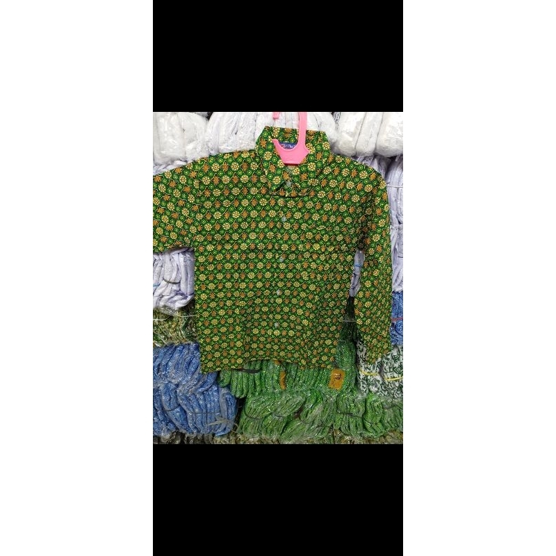 Baju Sekolah Kemeja Batik Hijau MI Panjang Katun JM Seragam Sekolah