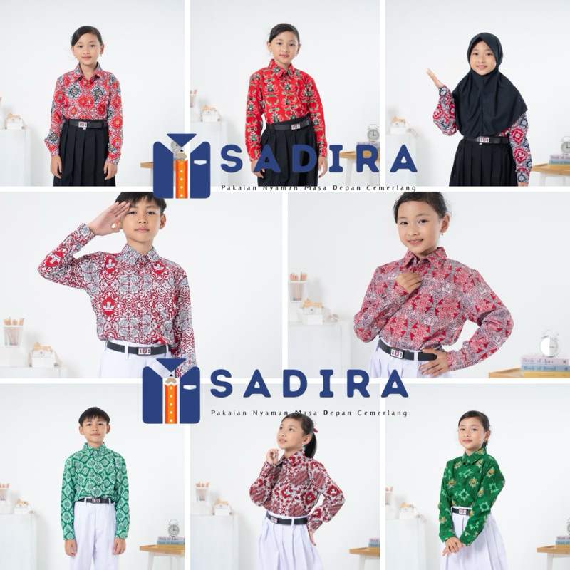 BATIK SD/MI LENGAN PANJANG, TUGU MIRING, MATAHARI, PALEMBANG JAYA, IKHLAS BERAMAL, BUNGA BANGSA, BANYUASIN