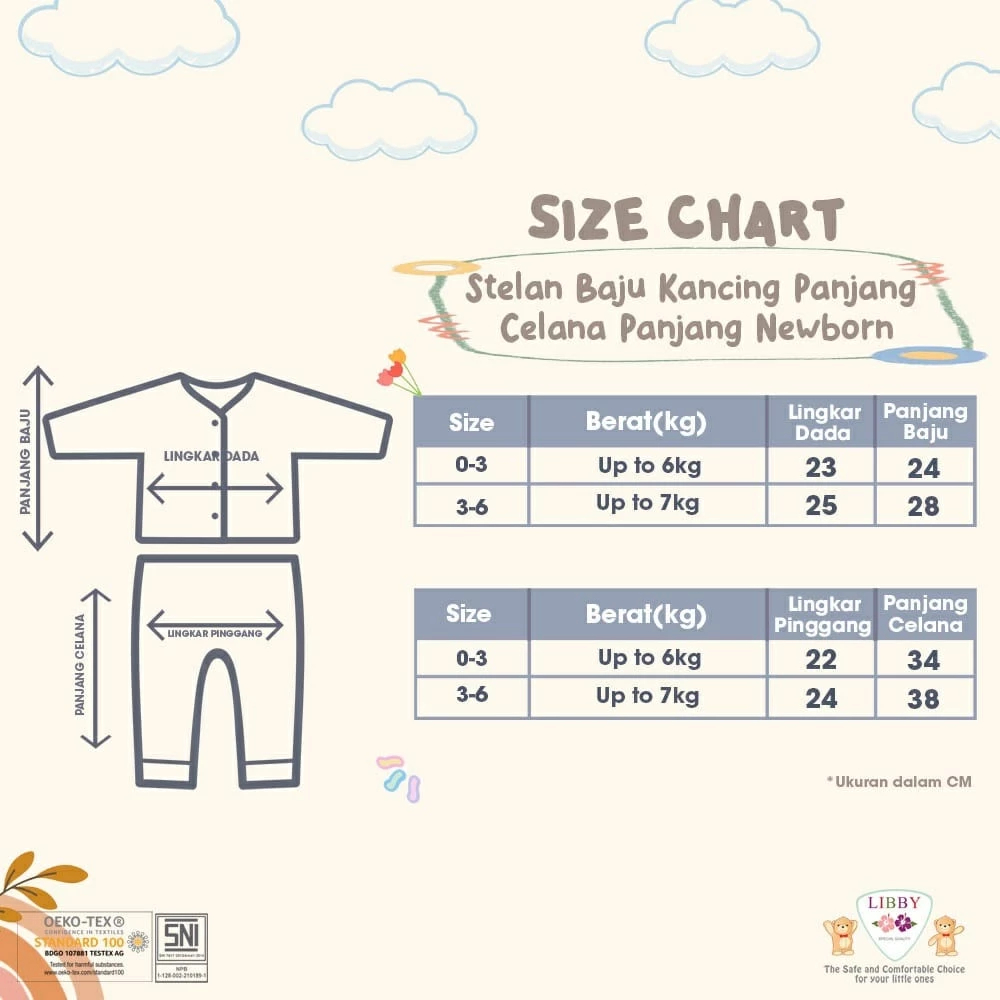 Libby / Miyo Setelan Baju Panjang Celana Newborn Motif 0-3 Dan 3-6 Bulan Piyama Baju Bayi Libby Baby