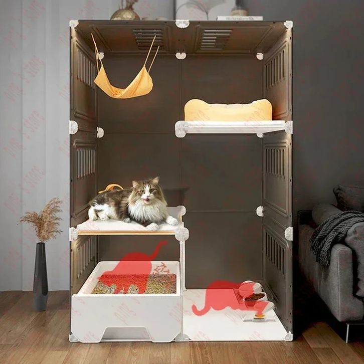 ⚡With Litter Box&Led⚡Rumah Kucing Villa Kucing Pet Household Cage with Cat Litter Box Integrated Extra Large Free Space