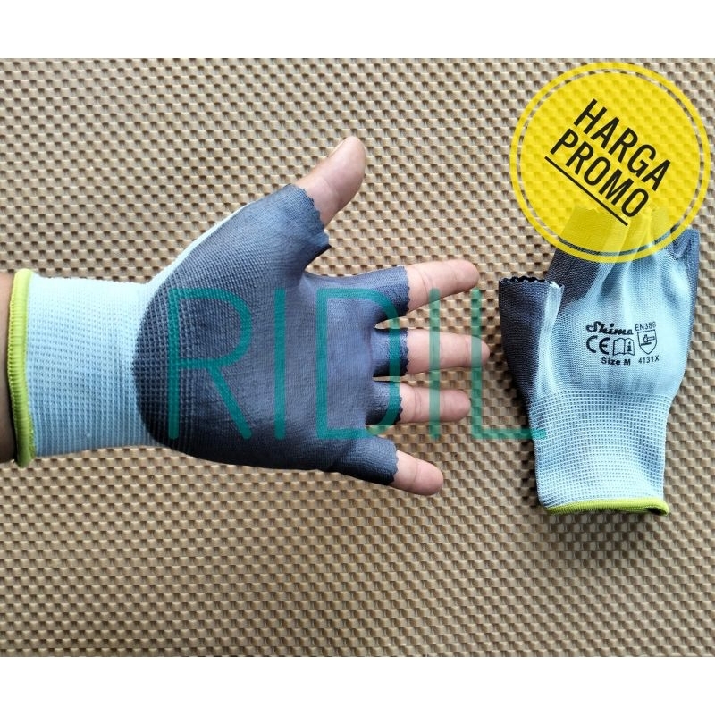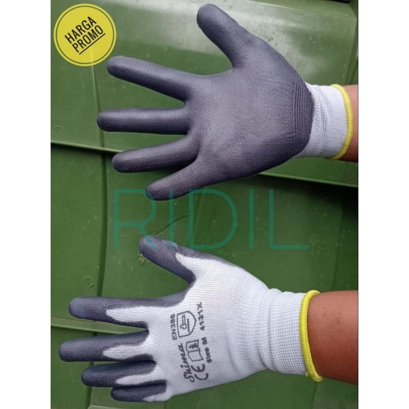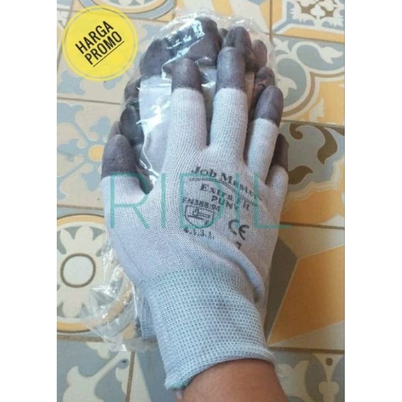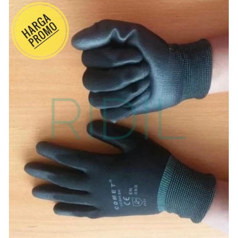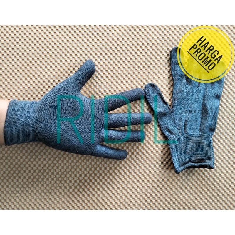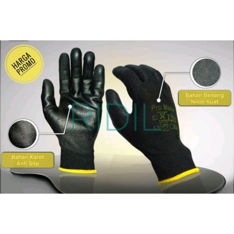 sarung tangan kerja 1lusin/12pasang pro master hitam palm fit kain nylon lapis karet anti slip mekanik industri kebun