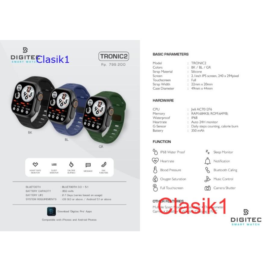 Original 100%!! Promo original Digitec TRONIC2 Jam Tangan Unisex Smartwatch Original Garansi Resmi 1 tahun