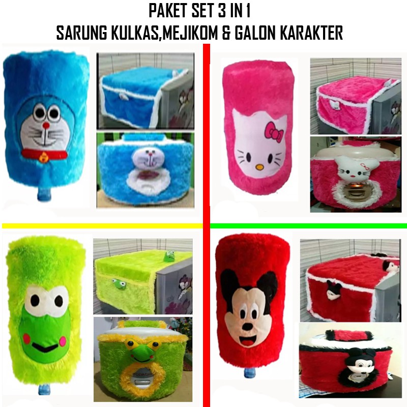 BANDO SET/HOME SET 3 IN 1 SARUNG KULKAS,MEJIKOM DAN GALON KARAKTER BAHAN RASFUR