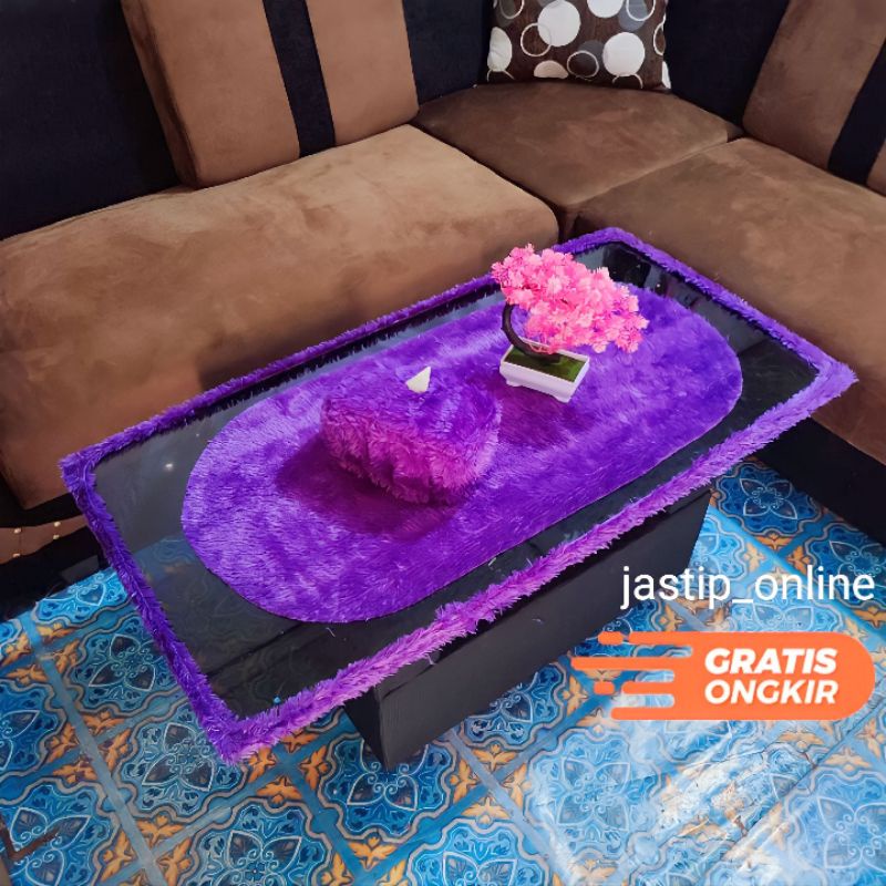 TAPLAK MEJA KACA AESTHETIC RUANG TAMU OVAL PERSEGI PANJANG