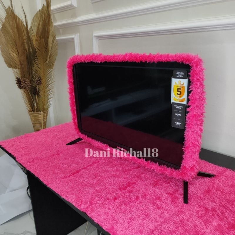 1 Set taplak meja tv bulu rasfur uk 100×50 cm + Bando tv led polos uk 14-32 inchi