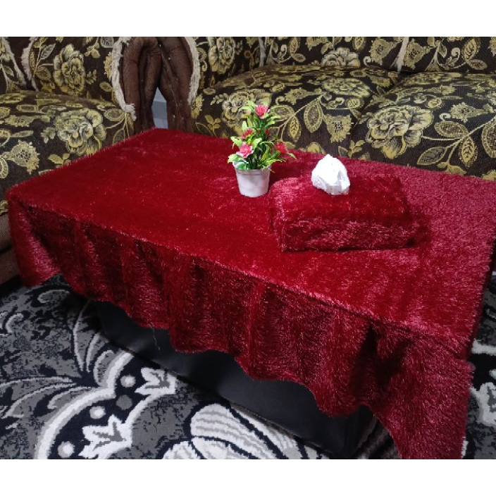 Taplak Meja Rumbai Bulu Rasfur Ukuran 100x50 CM + Sarung Tissue Bulu PAKET HEMAT