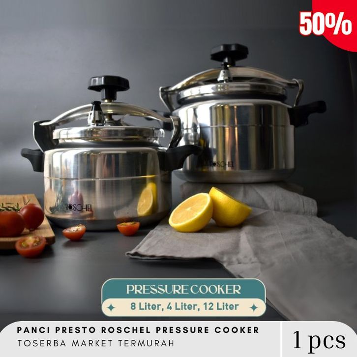 PANCI PRESTO ROSCHEL PRESSURE COOKER HIGH GRADE ALUMINIUM 3003 8 LITER / 12 LITER INDUKSI RPO-104 TERBARU