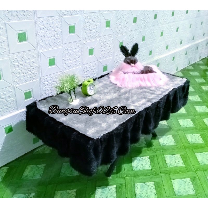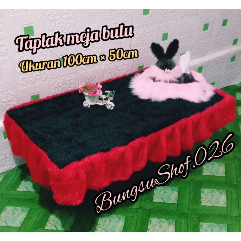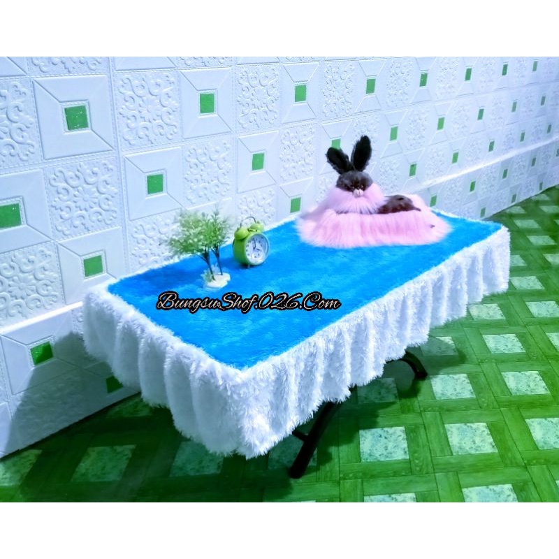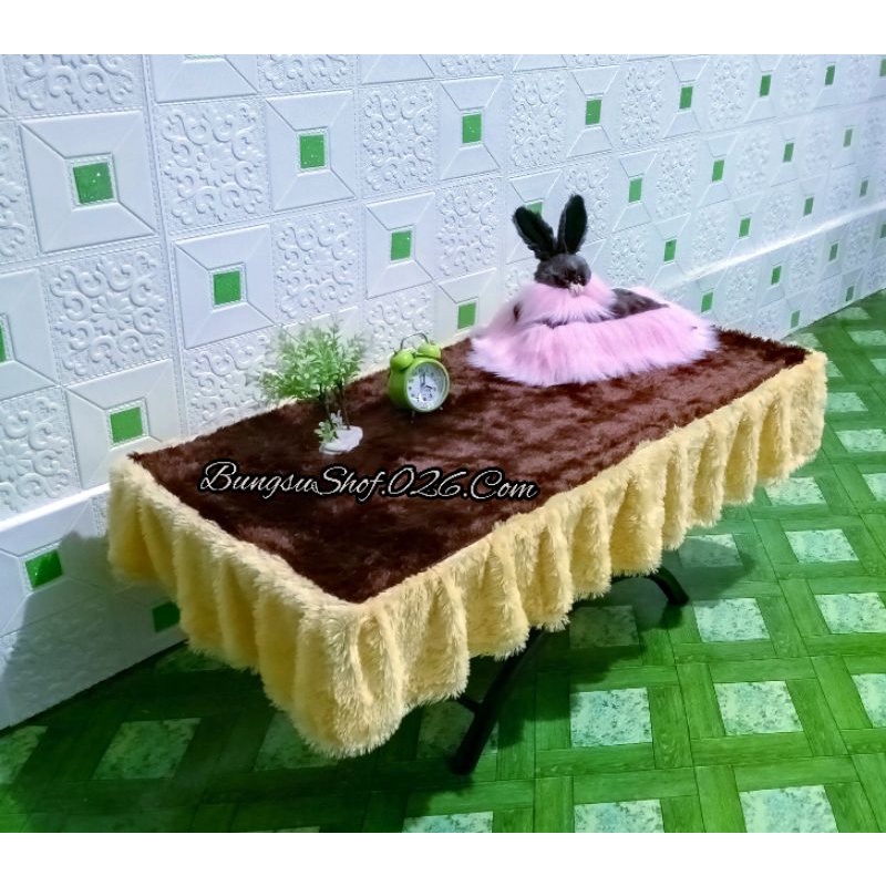Taplak meja bulu kombinasi ukuran 100cm*50cm/tinggi rumabai 20cm