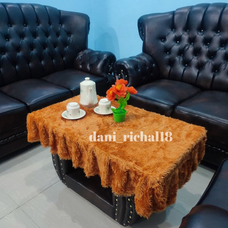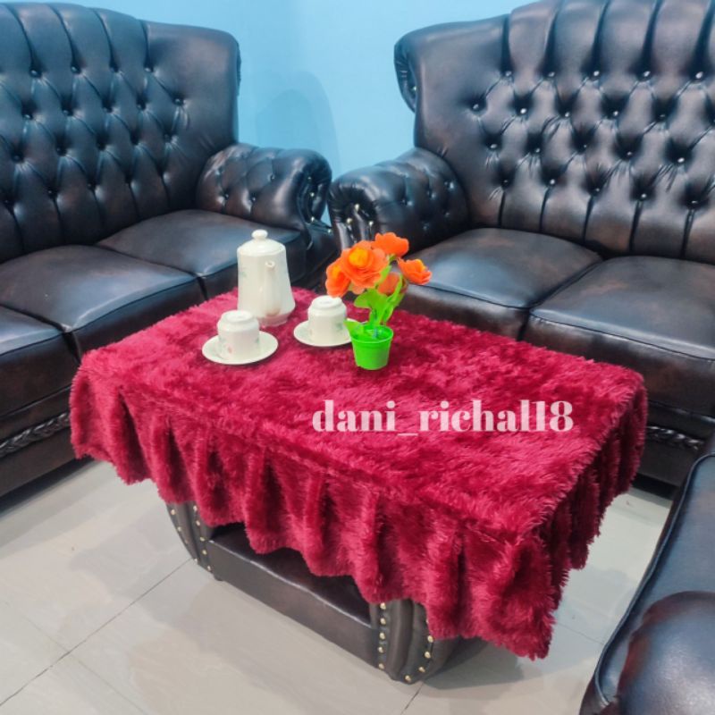 Taplak meja bulu rumbai / taplak meja rumbai bulu premium / taplak meja bulu rasfur / taplak meja ruang tamu
