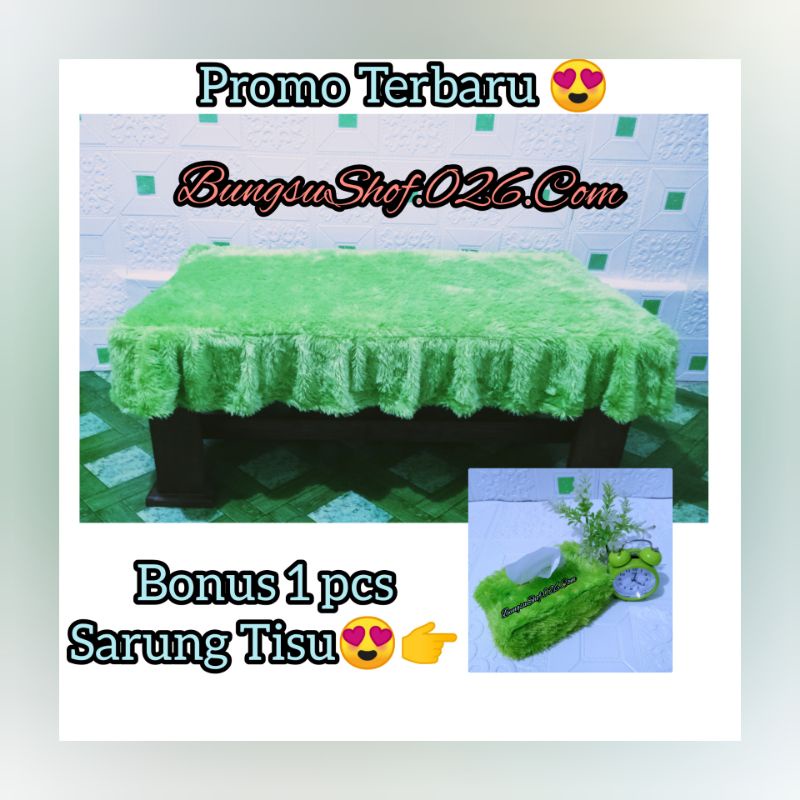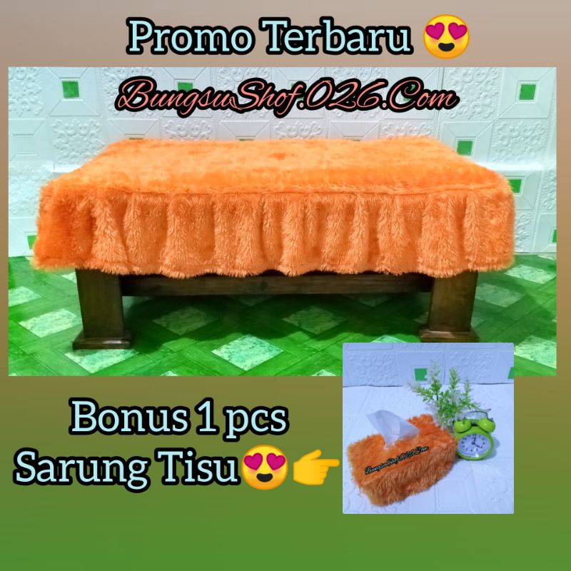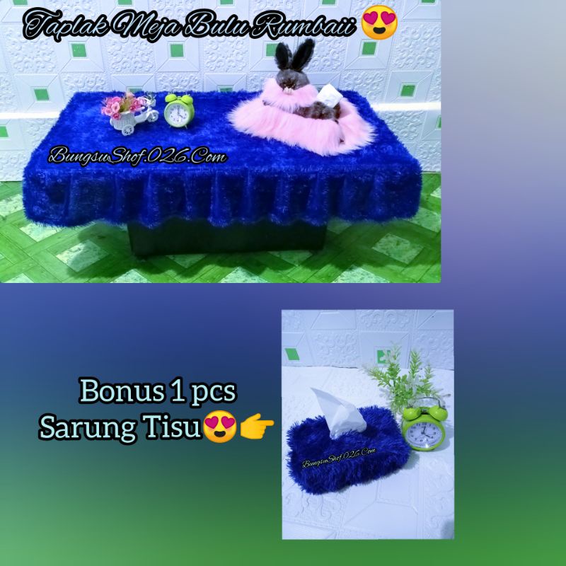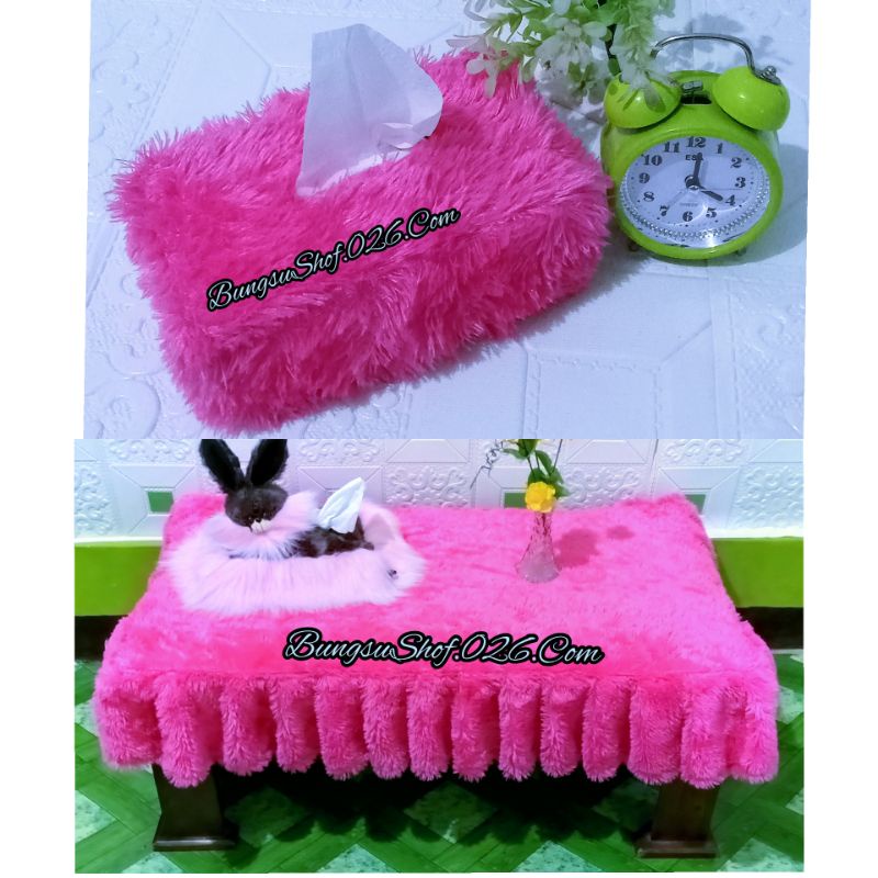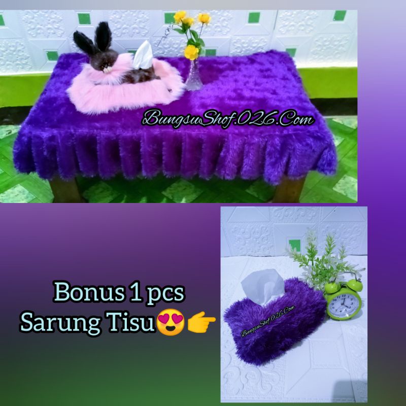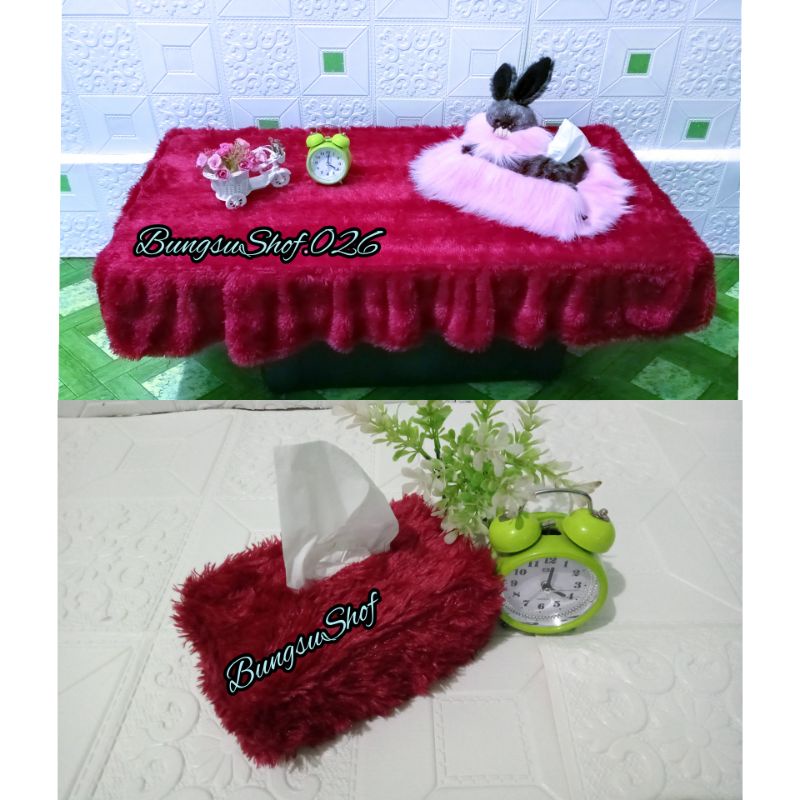 Taplak meja bulu rumbai + bonus sarung tisu kotak