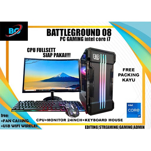 Pc gaming editing core i7 ram 16gb ssd 240 gb vga 4 gb monitor 24 inc Samsung Curved siap pakai