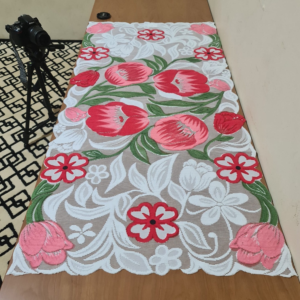 Taplak Meja Ukuran 100x50 Cm. Atau Taplak Meja Ruang Tamu Karakter motif bunga tulip Minimalis Modern|