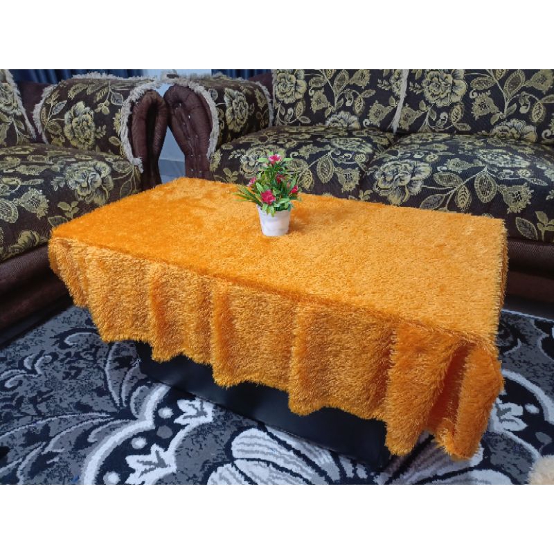 Taplak Meja Kaca Ruang Tamu Rumbai Bulu Rasfur Ukuran 100x50 cm