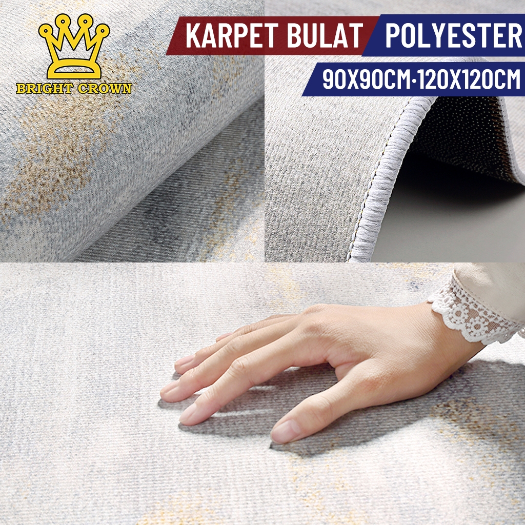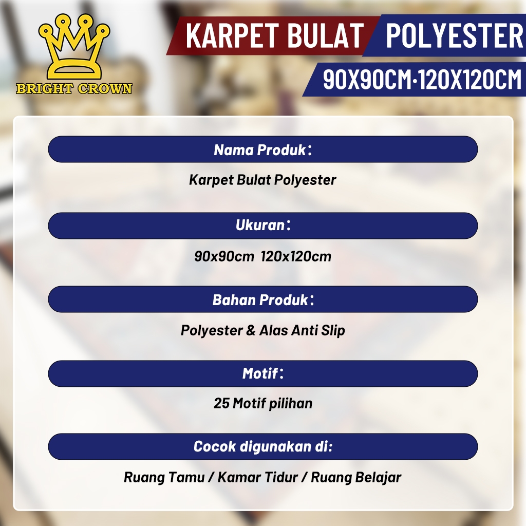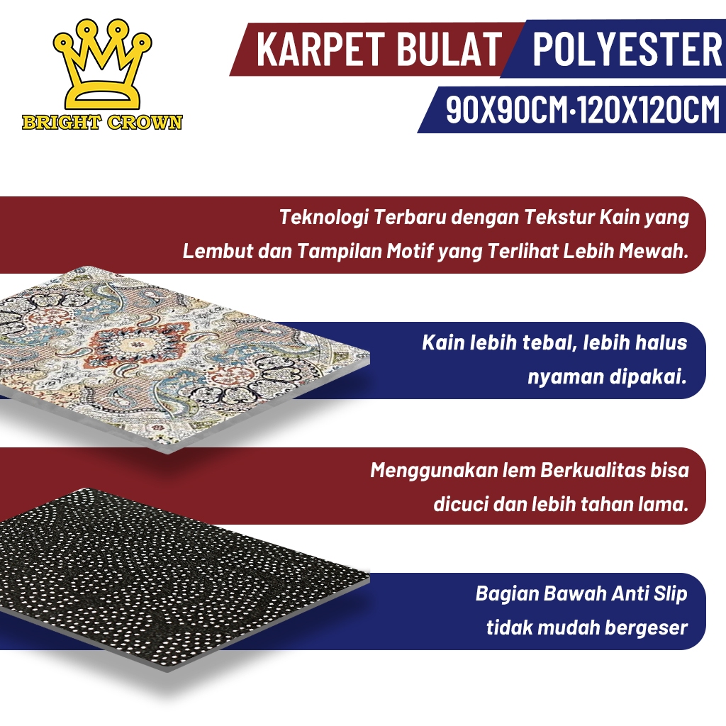 Bright Crown BELI LOKAL Karpet Lantai Polyester BULAT 90x90CM / 120x120CM PREMIUM Anti Slip