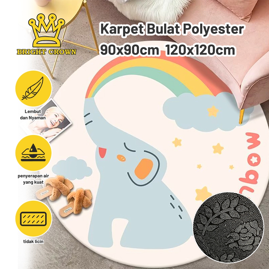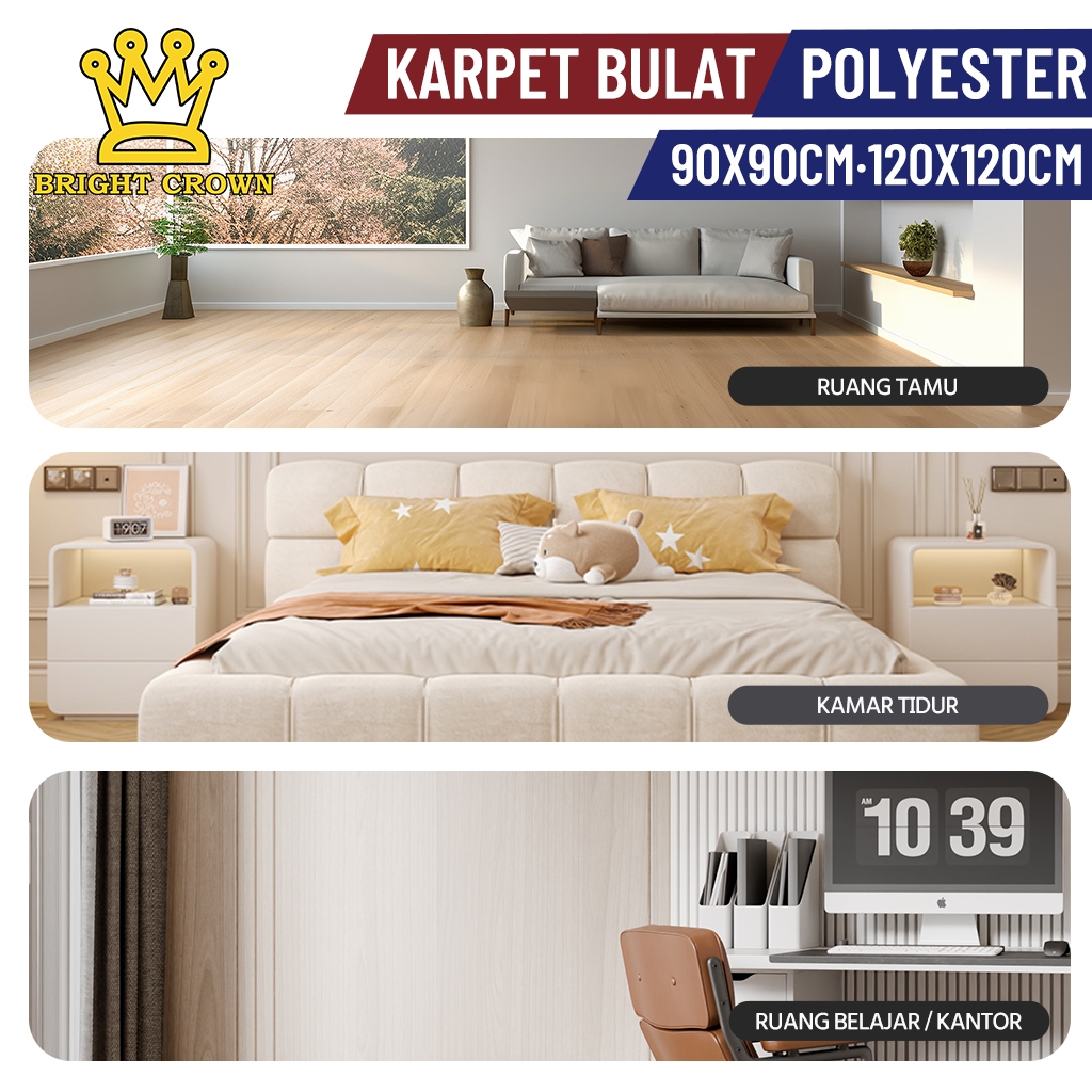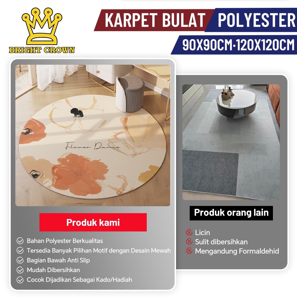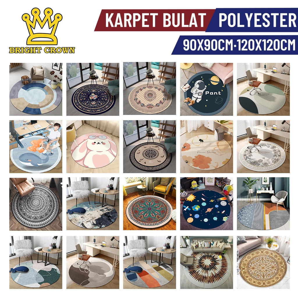 Bright Crown BELI LOKAL Karpet Lantai Polyester BULAT 90x90CM / 120x120CM PREMIUM Anti Slip