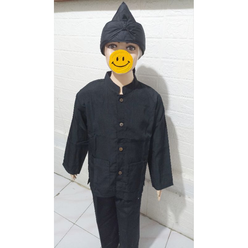 setelan pangsi anak (gratis iket kepala) bahan bestwey hitam polos