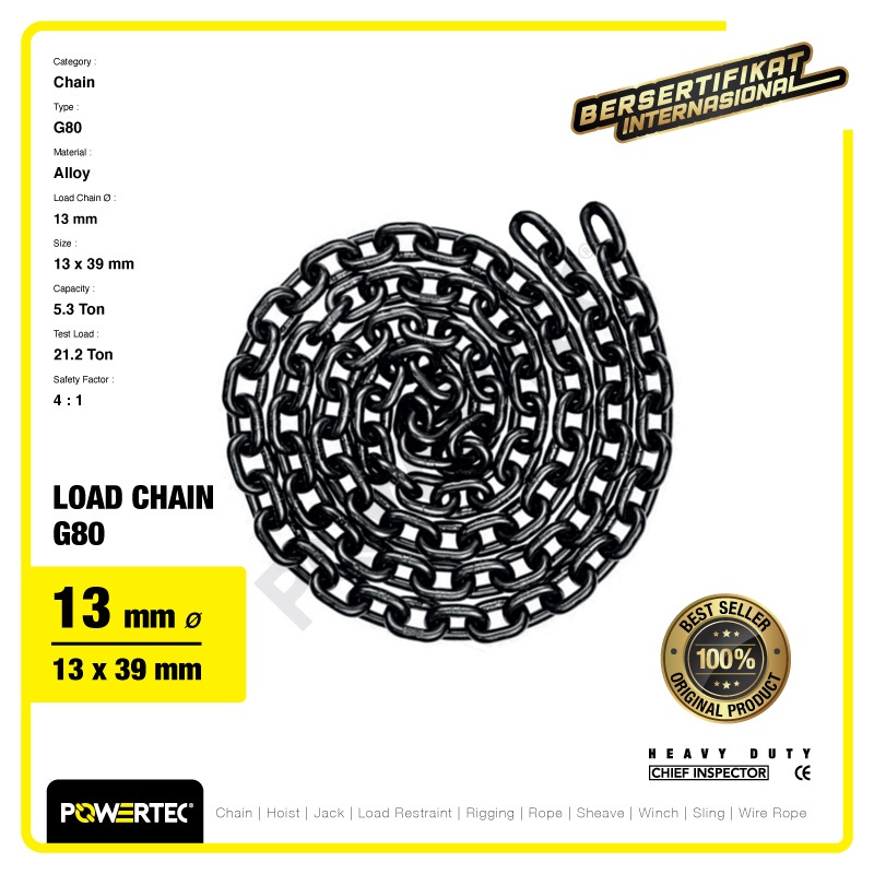 POWERTEC LOAD CHAIN / RANTAI BAJA G80 - 13MM - METERAN
