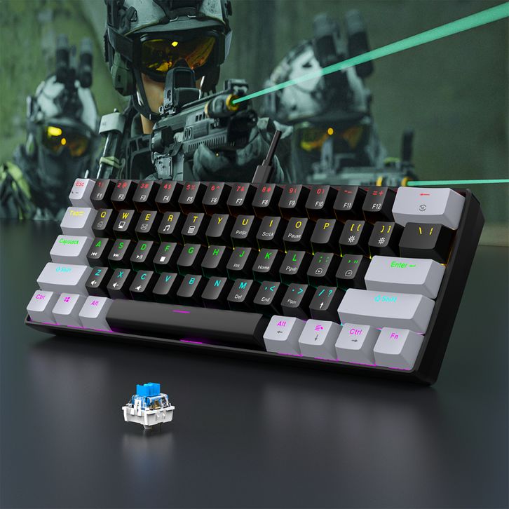 Keyboard Gaming Mekanikal Kabel RGB Design Light 61 Key Compact Design Lightweight Komputer Keyboard