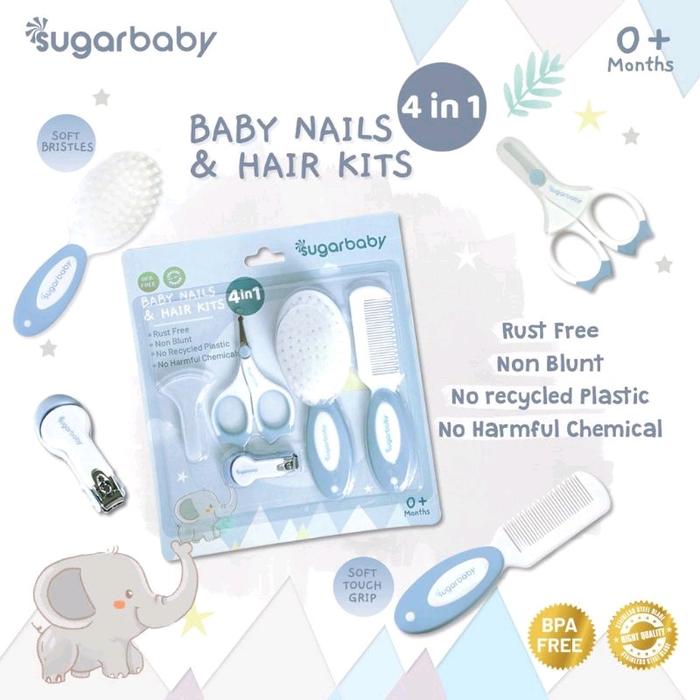 Murah Sugar Baby 4in1 Baby Nail & Hair Kits - Sisir Gunting Kuku Anak Bayi Manicure Set - 4 IN 1 BLUE Promo