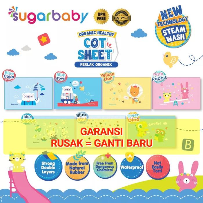 Terlaris PERLAK Bayi Organik Alas Ompol Sugar Baby / PERLAK Waterproof - PERLAK BLUE ELEPHANT Promo