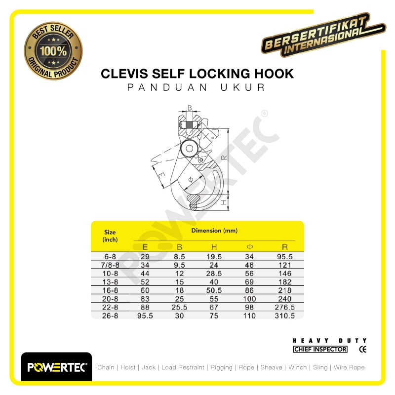 POWERTEC CLEVIS SELF-LOCKING HOOK 8MM - 2 TON