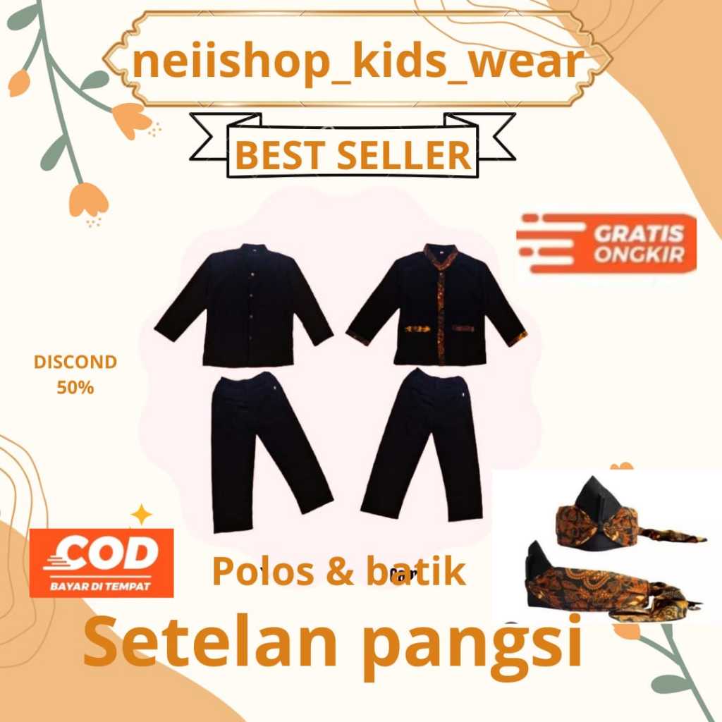 setelan Pangsi Anak Batik Polos baju kampret dan Seragam Sekolah (BELUM TERMAUK IKAT KEPALA) TK SD BAJU ADAT SERAGAM S
