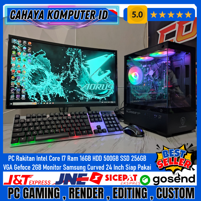 PC Gaming Editing Intel Core I7 Ram 16GB SSD 256GB VGA 2GB Monitor Samsung Curved 24 Inch Siap Pakai