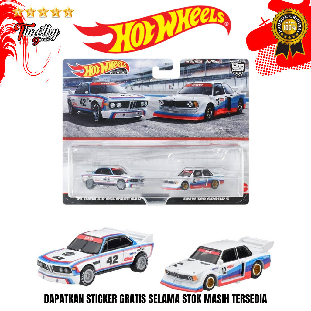 Paket Hot Wheels Premium Isi 2 Pcs BMW 320 Group 5 & 2001 BMW M3 GTR Mainan Mobil Balap Diecast Original Premium Mattel