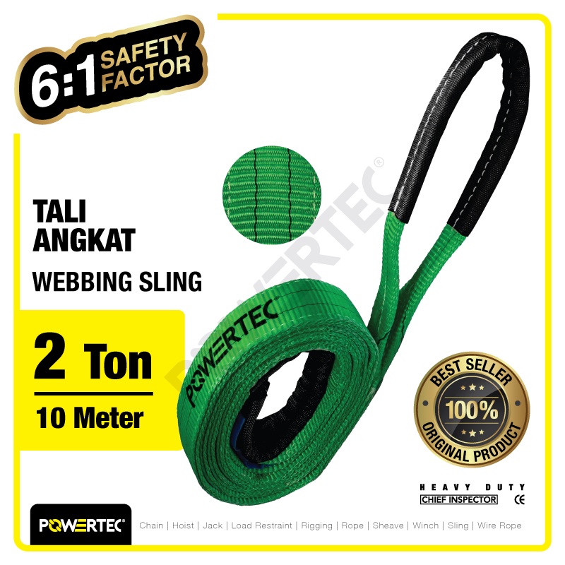 POWERTEC WEBBING SLING BELT / TALI ANGKAT 2 TON X 10 METER DOUBLE PLY