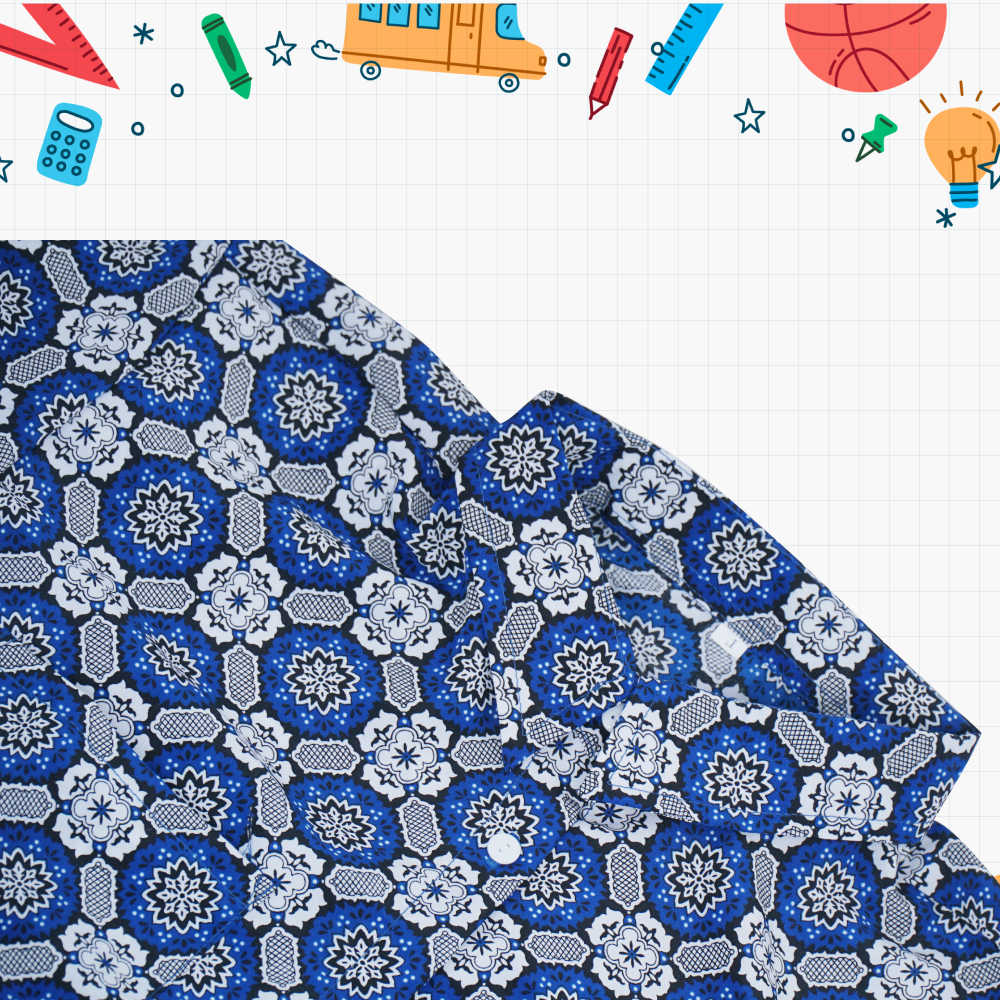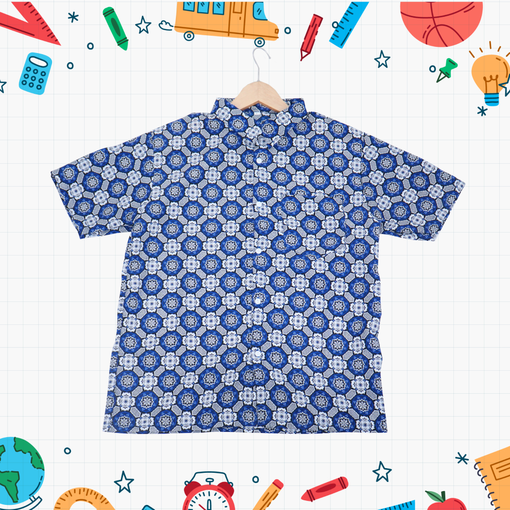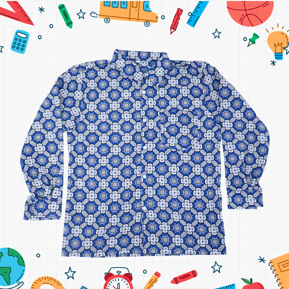 Baju Batik Sekolah SMP/SMA Motif Bunga Matahari Biru Lengan Pendek & Lengan Panjang