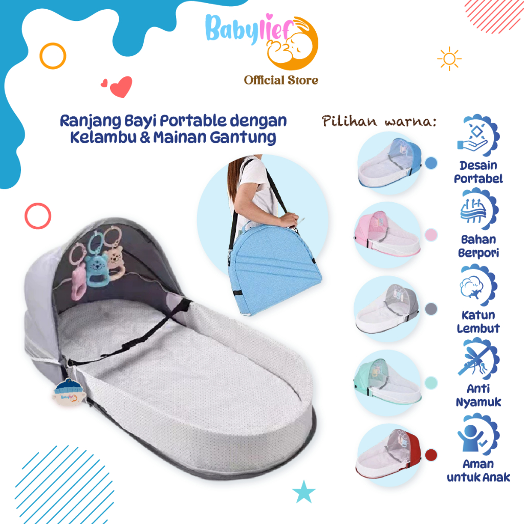 Babylief Portable Travel Bed – Tempat Tidur Bayi Lipat dengan Kelambu, Praktis & Anti Nyamuk untuk Bepergian BL036