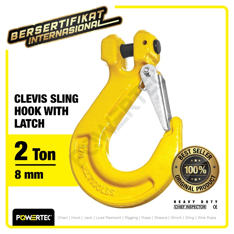 POWERTEC CLEVIS SLING HOOK WITH LATCH 8MM - 2 TON