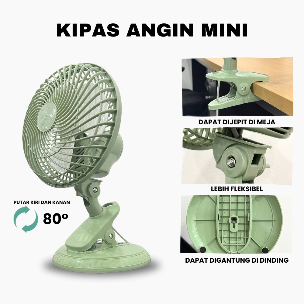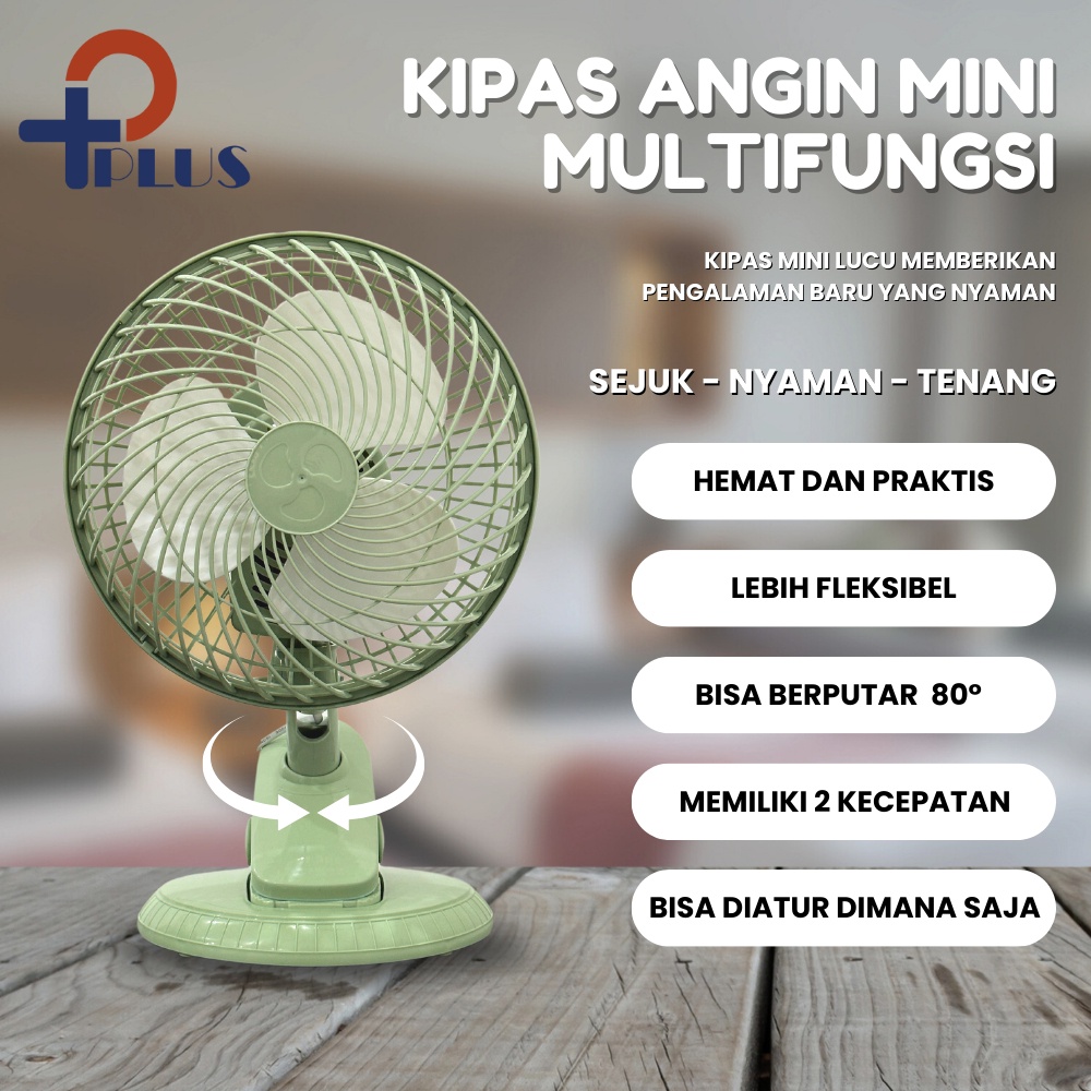 [ Pplus ] Kipas Angin Multi Fungsi Jepit + Meja Duduk + Dinding Tembok Muter Kiri Kanan Ukuran 8 Inch 25 Watt