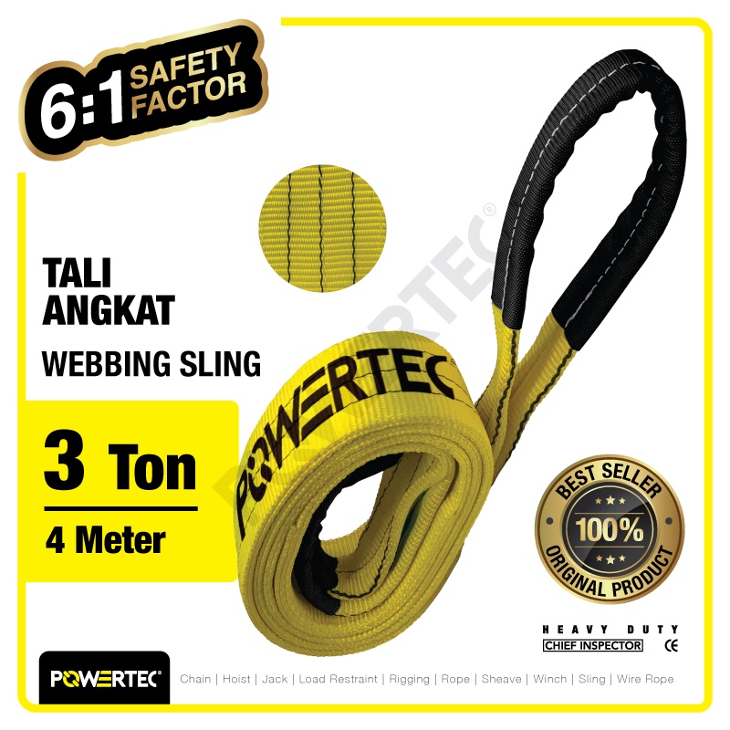 POWERTEC WEBBING SLING BELT / TALI ANGKAT 3 TON X 4 METER DOUBLE PLY